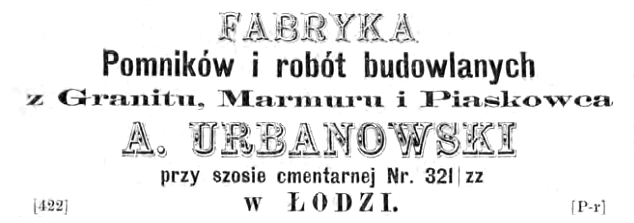 Właścicielem największego zakładu kamieniarskiego w Łodzi był Antoni Urbanowski. Firma mieściła się przy ulicy Cmentarnej, co nie powinno dziwić, bowiem działalność przedsiębiorstwa związana była głównie ze sztuką sepulkralną. Pokaźna liczba pomników na cmentarzu przy ulicy Ogrodowej pochodziła właśnie z firmy Urbanowskiego.