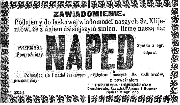 W 1920 roku firma zmieniła nazwę na: Przemysł Powroźniczy "Napęd".