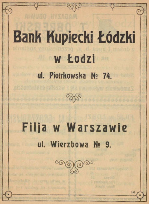 W okresie okupacji niemieckiej w budynku także działał bank, była to łódzka filia banku drezdeńskiego.
