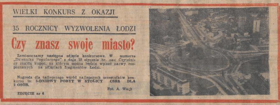 W 1980 roku „Dziennik Popularny” ogłosił konkurs skierowany do łodzian „Czy znasz swoje miasto?”. W kolejnych publikowanych numerach dziennik zaprezentował zdjęcia nowych inwestycji: osiedli mieszkaniowych i tras poprowadzonych przez miasto. Autorem zdjęć był Andrzej Wach.
